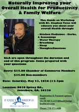 This Hands on Workshop with Dr. Stephen Tates will educate you about your overall Health through: